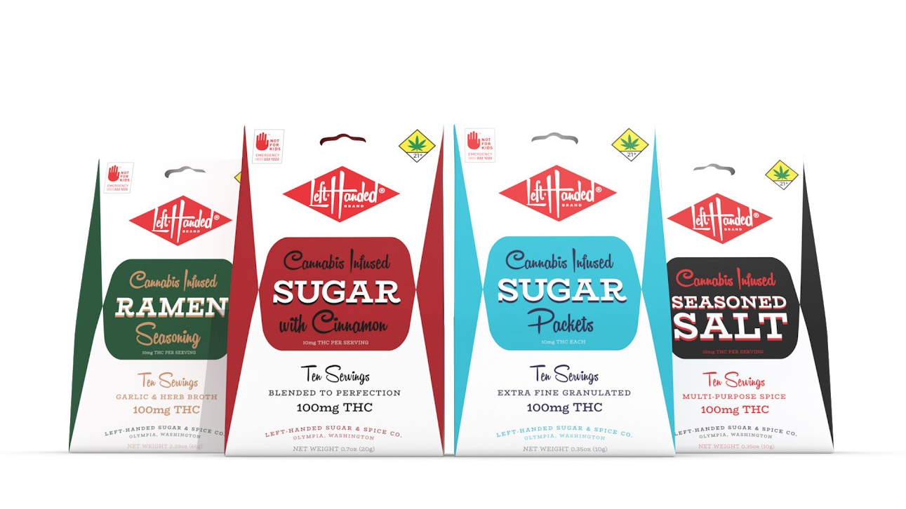 Left Handed Sugar Spice Four Published June 4, 2019 at 1291 × 726 in Left Handed Sugar Spice Four Left Handed Brand Cannabis Infused Sugar and Spice Packets, Cannabis, marijuana, thc, sugar, salt, spice, cinnamon, sugar with cinnamon, seasoned salt, ramen seasoning, left, Olympia, Washington, WA, edible, edibles