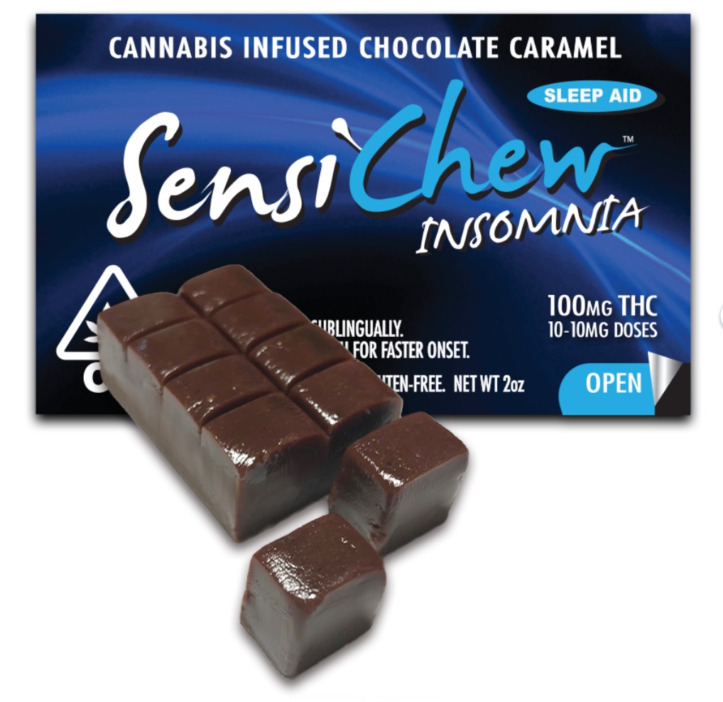sensi-chew-insomnia Published November 25, 2018 at 1018 × 988 in sensi-chew-insomnia sensi chew cannabis infused chocolate caramels insomnia formula with melatonin, cannabis, edible, thc, cbd, insomnia, sensi chew, marijuana, indica, sleep, insomnia plus, chocolate, caramel,